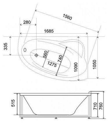 Акриловая ванна Bellsan Глория 1690*1090*710 R (правая - слив справа) информация: