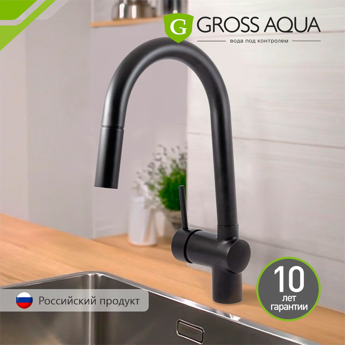 10 цен на Смеситель для кухни с выдвижным изливом и лейкой Gross Aqua Extra, латунь, черный матовый, 3140609MB.