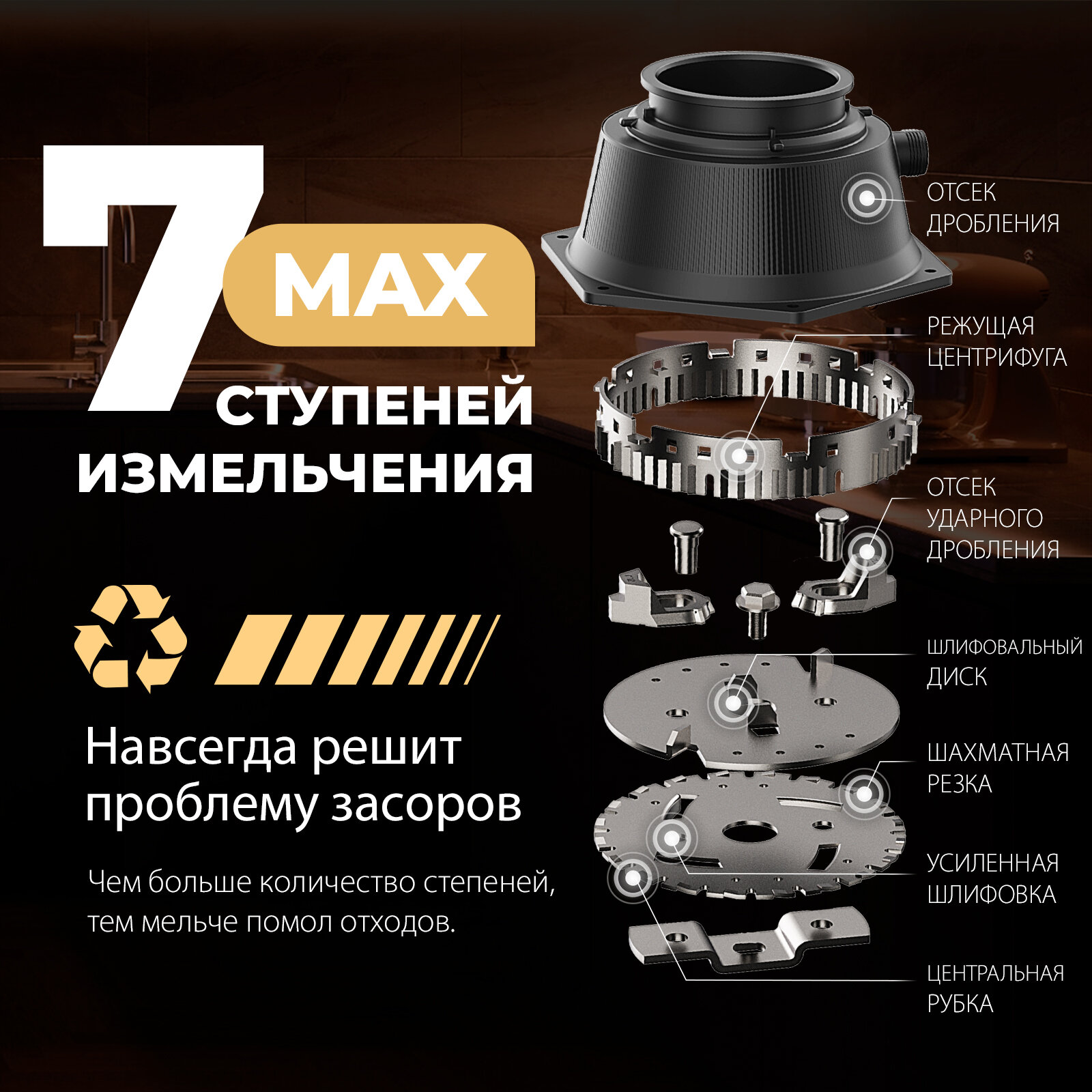 | Дополнительная информация | Подходит для измельчения любых пищевых отходов. Производительность - 6 кг в минуту. |