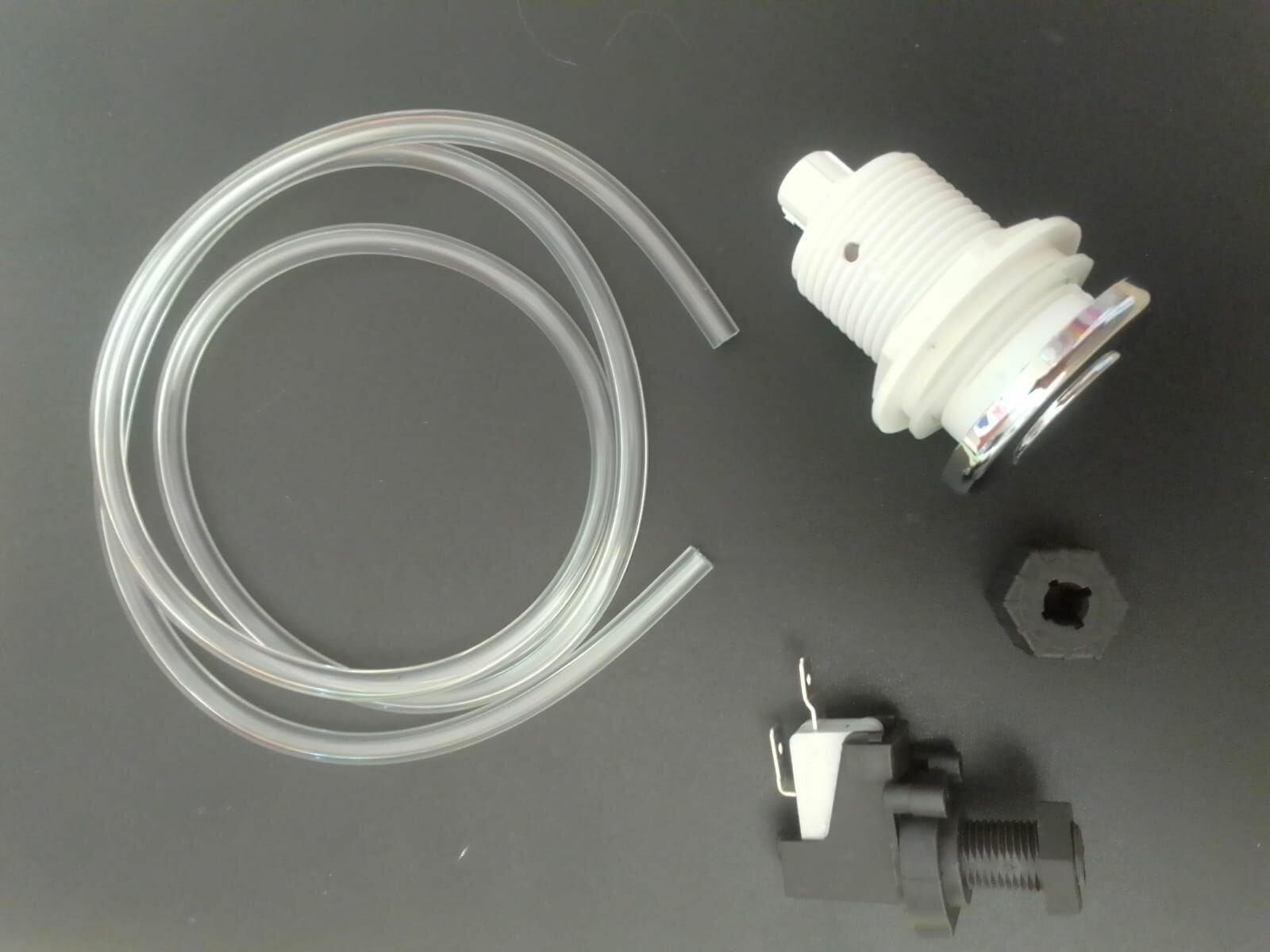 Кнопка пуска измельчителя отходов In-Sink-Erator, полный комплект - кнопка, шланг, пускатель Air switch, цвет белый панель хром глянцевый