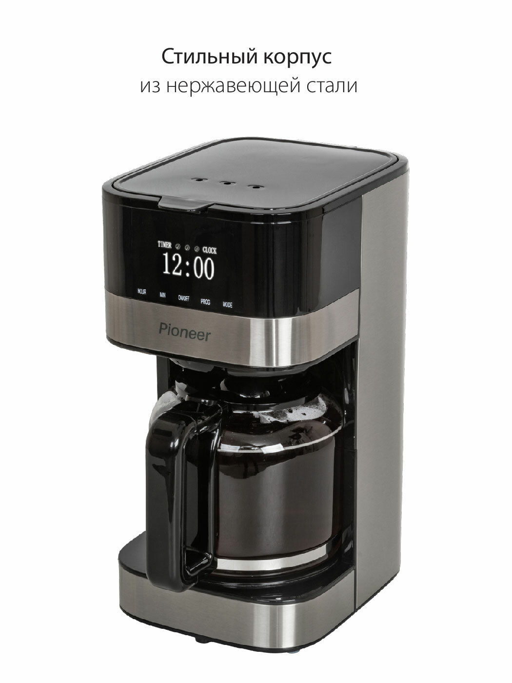 Отзывы на Кофеварка капельная профессиональная Pioneer со стеклянным кофейником до 12 чашек, 3 уровня крепости кофе, многоразовый фильтр