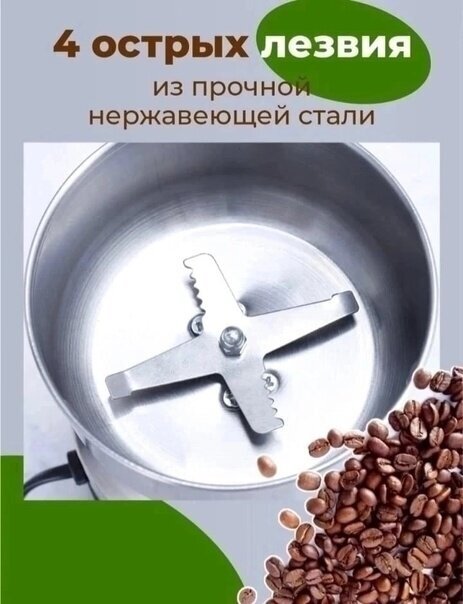 Электрическая супермощная кофемолка 4 лезвия в классическом дизайне информация: