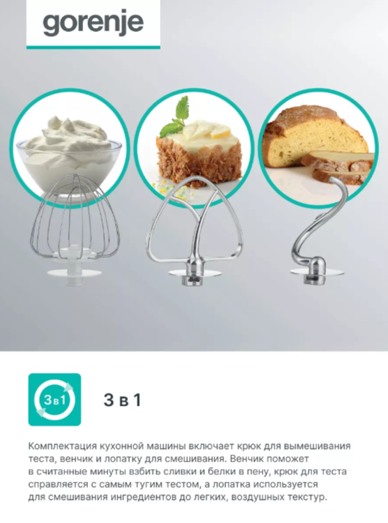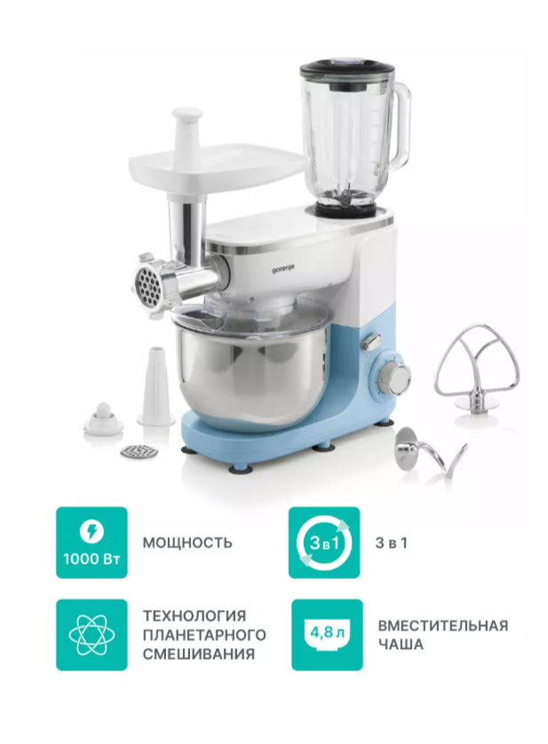 Кухонная машина Gorenje MMC1005W, белый,голубой информация: