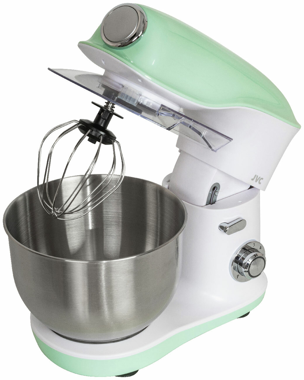 Миксер стационарный JVC со стальной чашей 5 литров, 6 скоростей, импульсный режим, 3 насадки, защитная крышка, 1000 Вт