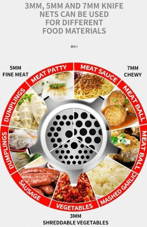 Отзывы на Мясорубка электрическая для фарша,серая3000Вт,функция реверс,3 диска нарезки,насадки для кеббе,колбас,сосисок,домашняя