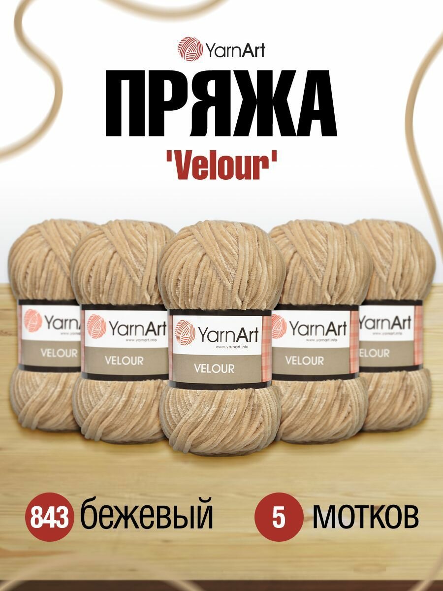 Пряжа YarnArt Velour светло-бежевый (843), 100%микрополиэстер, 170м, 100г, 5шт информация: