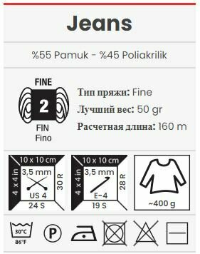 Пряжа YarnArt Jeans, 55 % хлопок, 45 % акрил, 50 г, 160 м, 5 шт