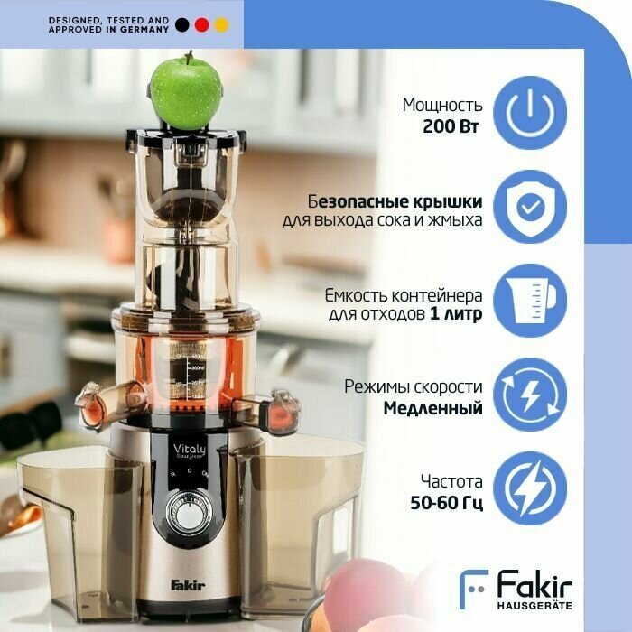 10 цен на Соковыжималка Шнековая Fakir Vitaly с реверсом - 200 Вт, 60 об/мин