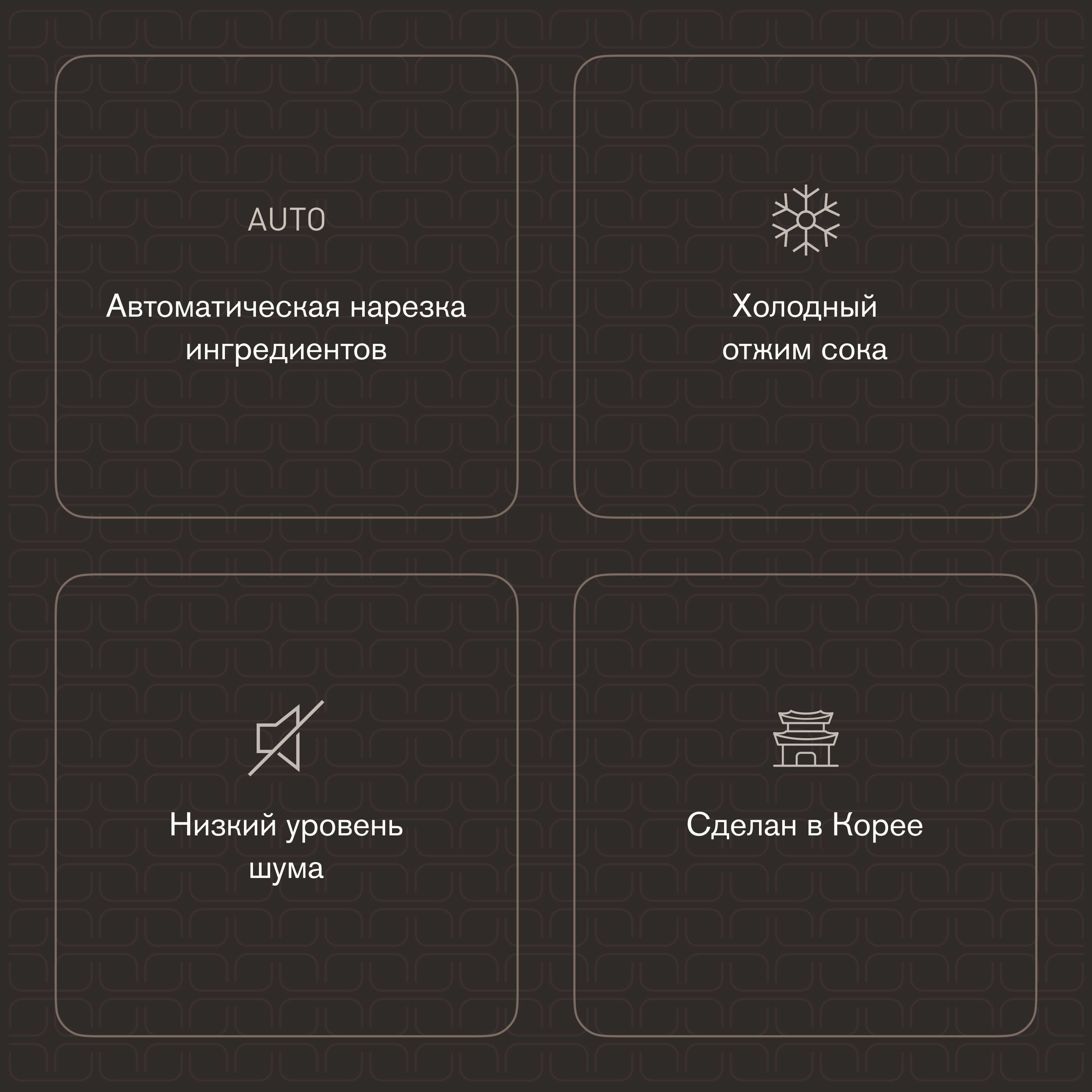 | Дополнительная информация | Загрузка целых овощей и фруктов, Подача сока в стакан, Регулировка количества мякоти |