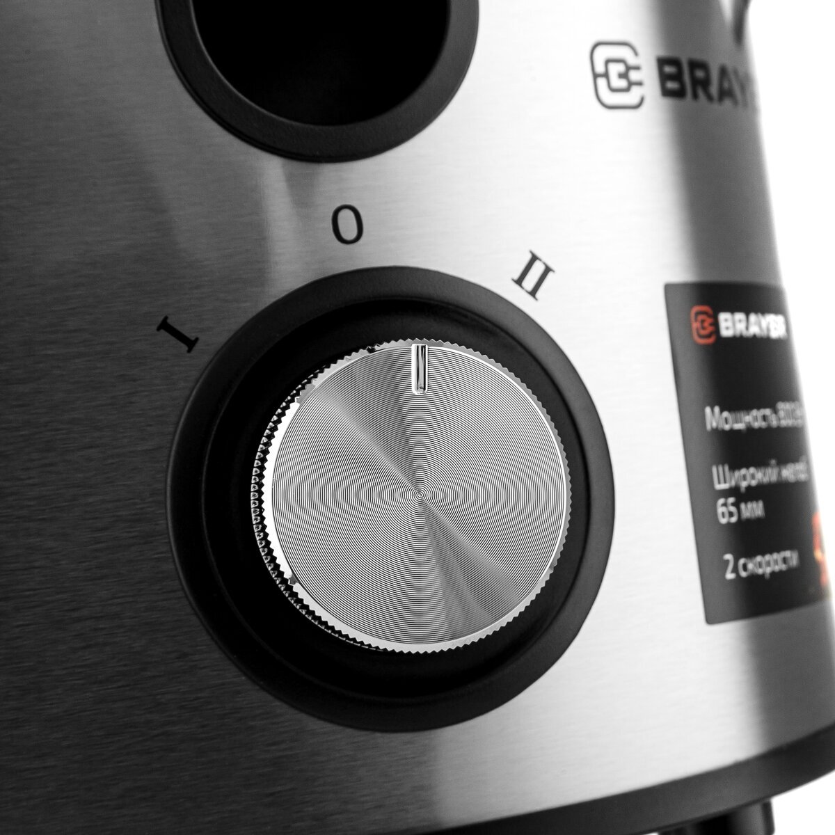 Соковыжималка шнековая BRAYER BR1701, 130 Вт, функция реверс, контейнер для сока 0,6 л, черная 1 шт .