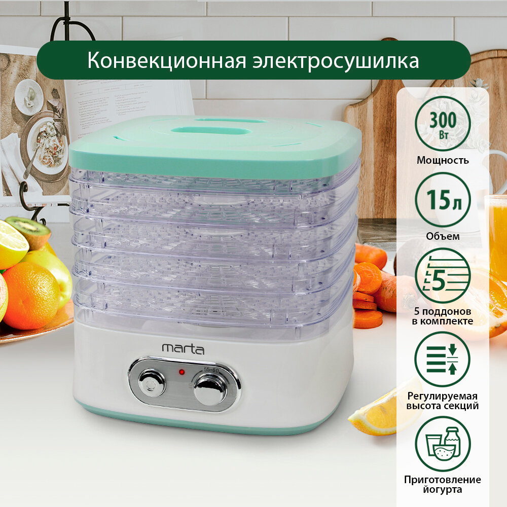 Мы выбрали 10 лучших цен на Электросушилка MARTA MT-1945 5 поддонов белый/светлая яшма. Перед тем как купить Электросушилка MARTA MT-1945 5 поддонов белый/светлая яшма посмотрите найденные предложения из Яндекс Маркета и других сайтов на основе XML фидов.
