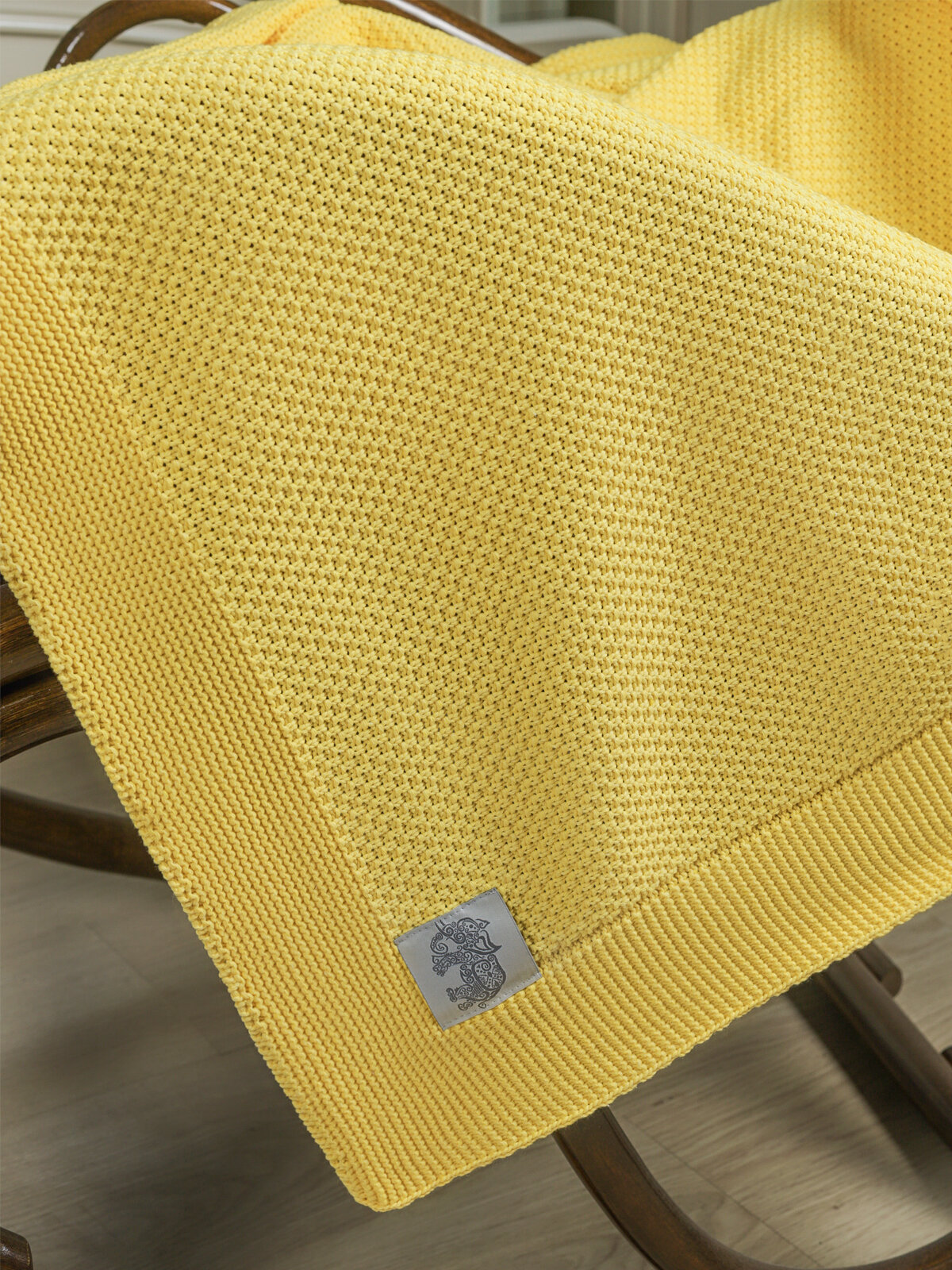 10 цен на Плед, вязаный, Warm Whiff, желтый, 180х220, хлопок, покрывало для взрослого, сна, дивана, на кресло, большой, тонкий, красивый, нежный