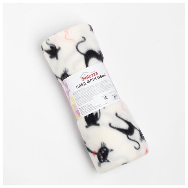 10 цен на Плед Belezza Cats Play, 130 х 170 см, белый/черный