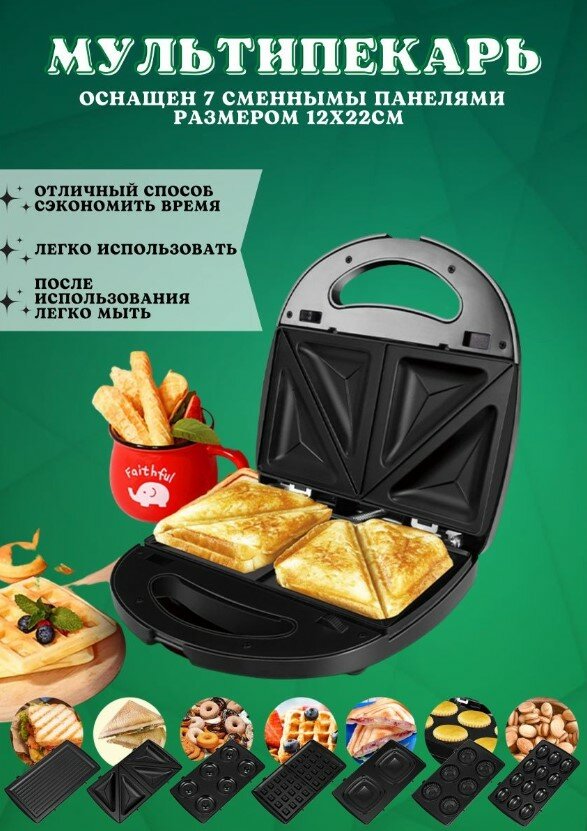 Отзывы на Мультипекарь для приготовления/Вафельница,сендвичница электрическая,орешница,гриль,для пончиков,7 в 1,2000Вт,черный