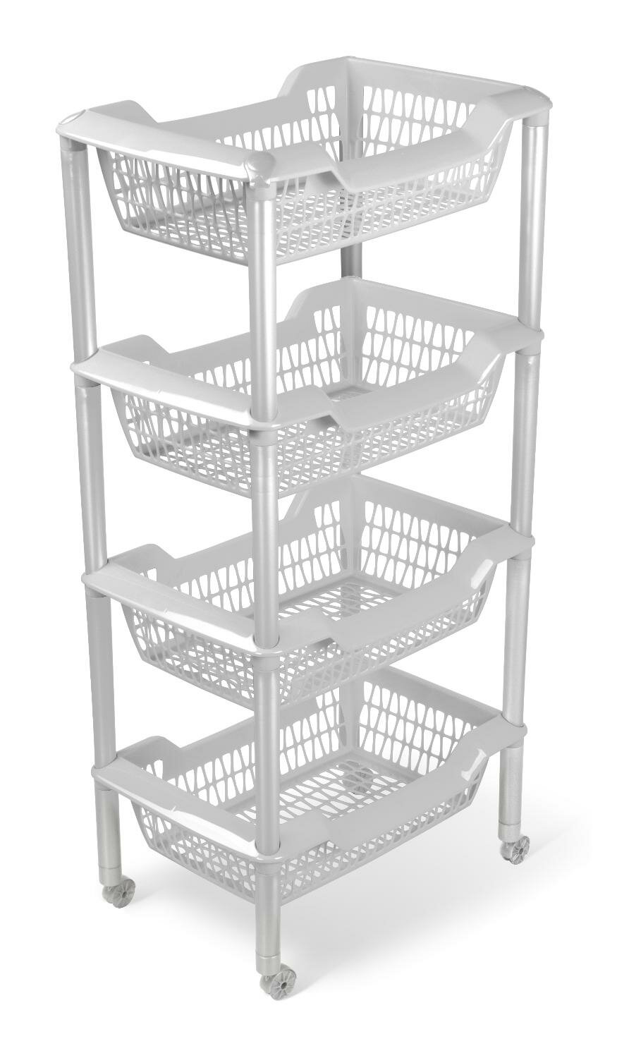 Этажерка 4 корзины Джета 440*304*896 мм на колесиках светло-серый