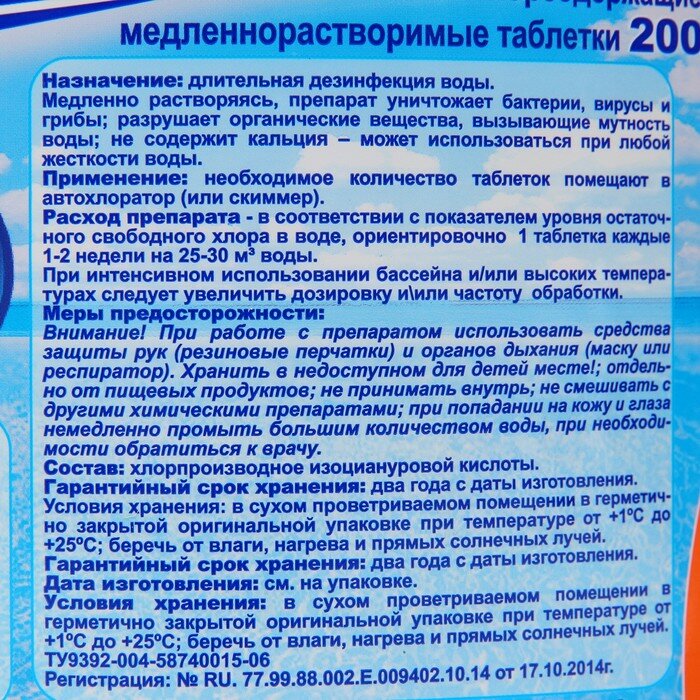 Медленнорастворимый хлор для непрерывной дезинфекции воды Маркопул Кемиклс, лонгафор (М15) 2.6кг. табл 200г. 2 200 ₽