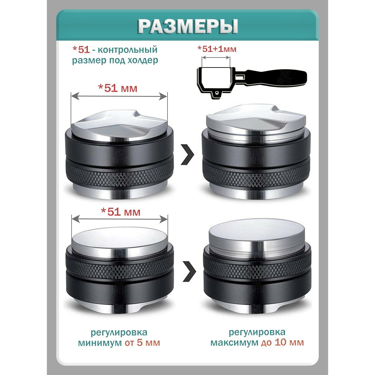 Пуш темпер для кофе двухсторонний, разравниватель и пресс для темпинга - 51 мм информация: