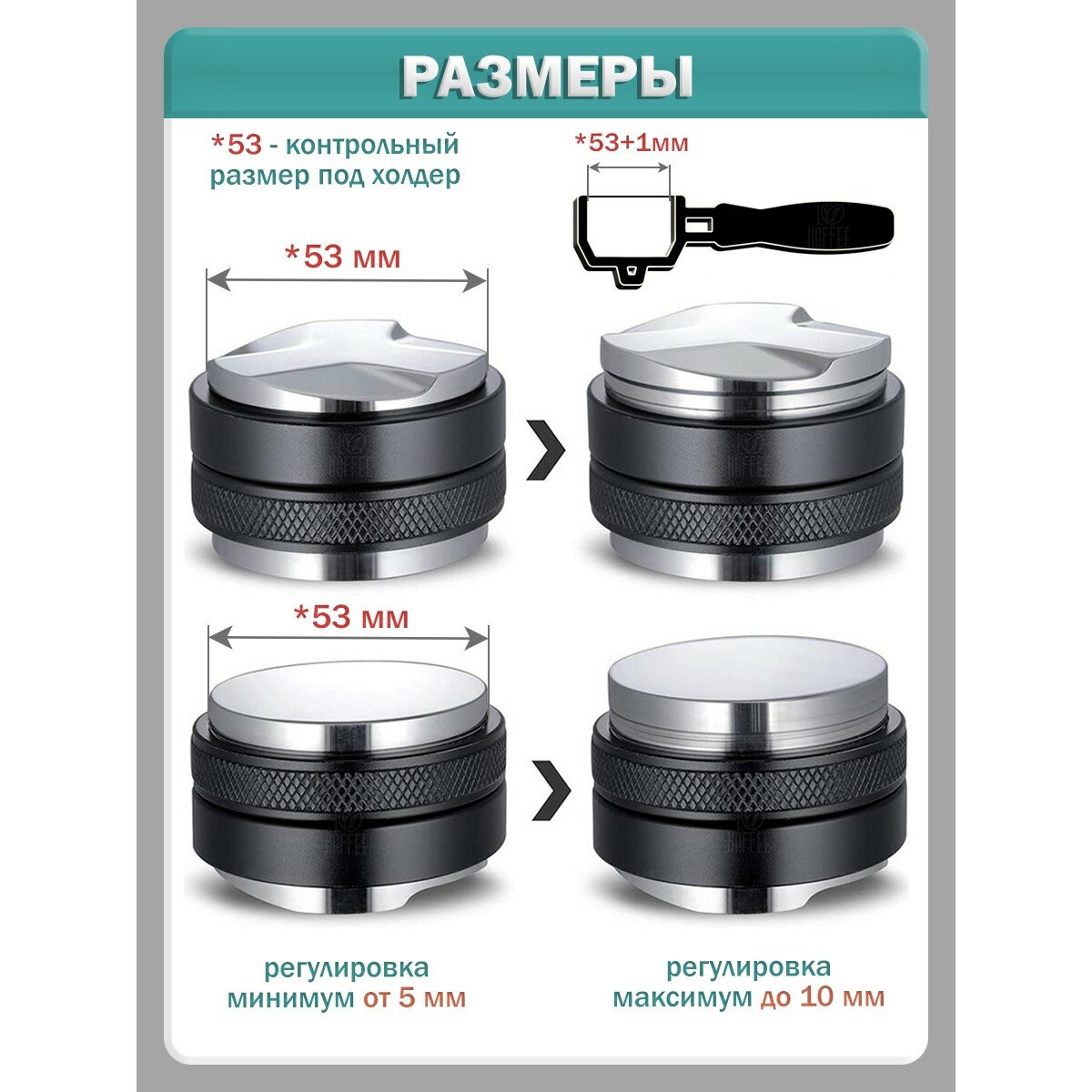10 цен на Пуш темпер для кофе двухсторонний, разравниватель и пресс для темпинга - 53 мм