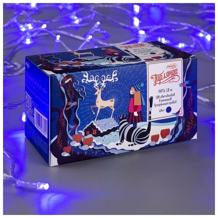 10 цен на Гирлянда «Нить» 10 м, IP20, прозрачная нить, 100 LED, свечение синее, 8 режимов, 220 В