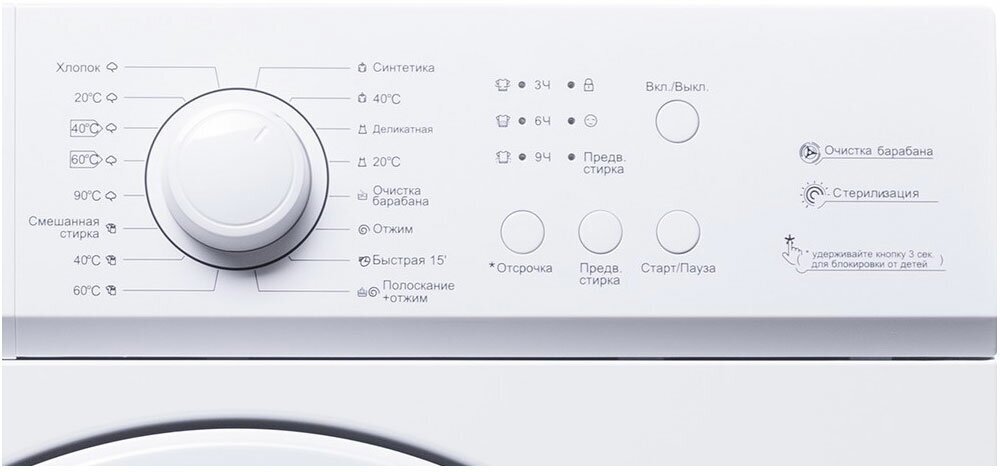 | Дополнительная информация | Программы: Хлопок, Хлопок 20°C, Хлопок 40°C, Хлопок 60°C, Хлопок 90°C, Смешанные ткани, Смешанные ткани 40°C, Смешанные ткани 60°C, Синтетика, Синтетика 40°C, Деликатная, Деликатная 20°C, Очистка барабана, Отжим, Быстрая 15’, Полоскание и отжим |