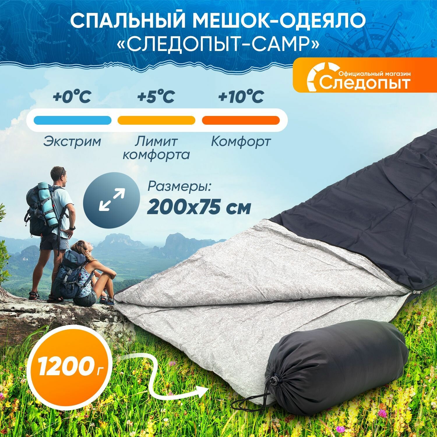 10 цен на Спальный мешок туристический "следопыт - Camp", 200х75 см., до 0С, 3х слойный, цв.темно-синий / Спальник туристический / Одеяло туристическое / Мешок-одеяло