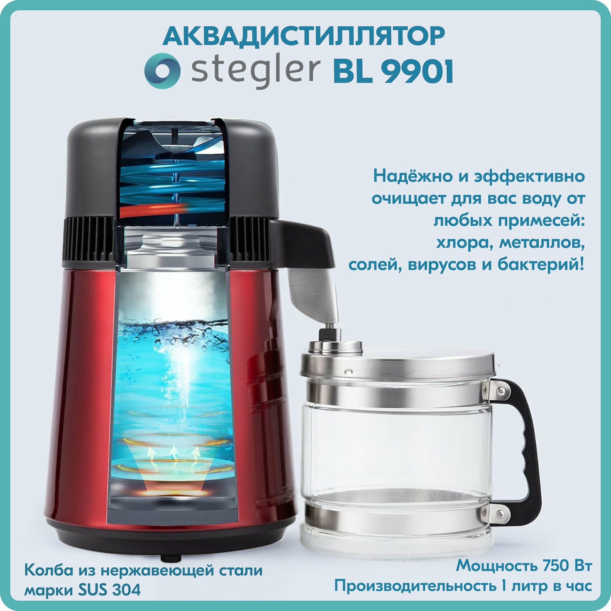 Аквадистиллятор (дистиллятор для воды) бытовой Stegler BL 9901 (стеклянный водосборник) информация: