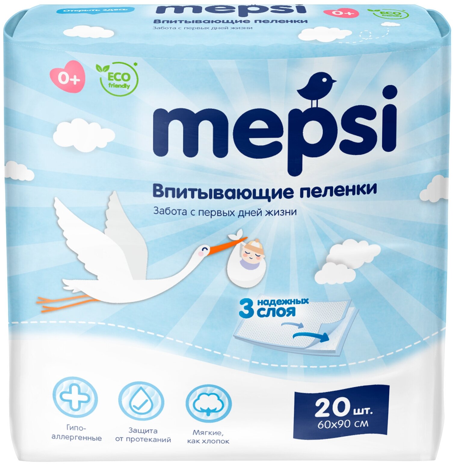 Одноразовая пеленка Mepsi Впитывающая, белый, 20 шт. 900 ₽