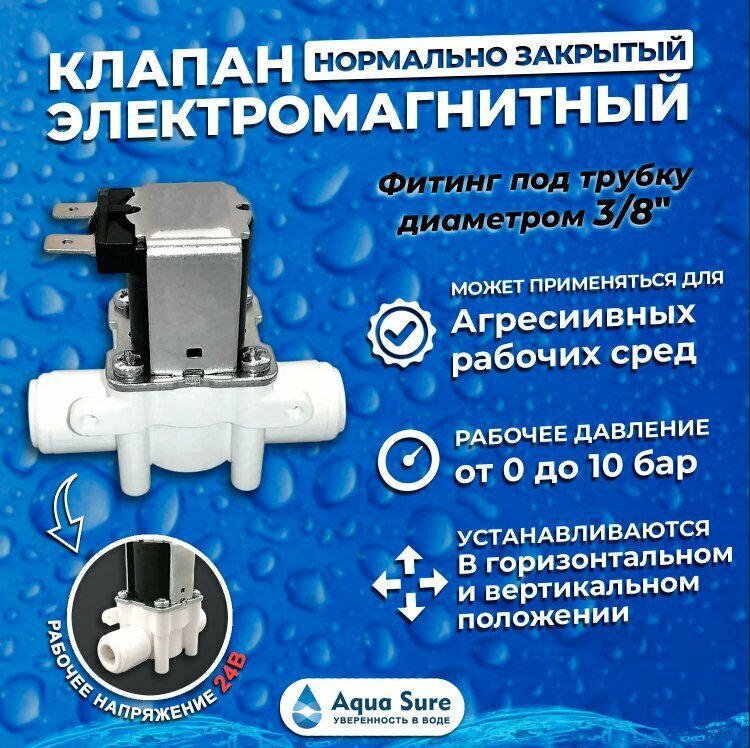 10 цен на Клапан для воды 24В. нормально закрытый, присоединительный размер 3/8 дюйма.