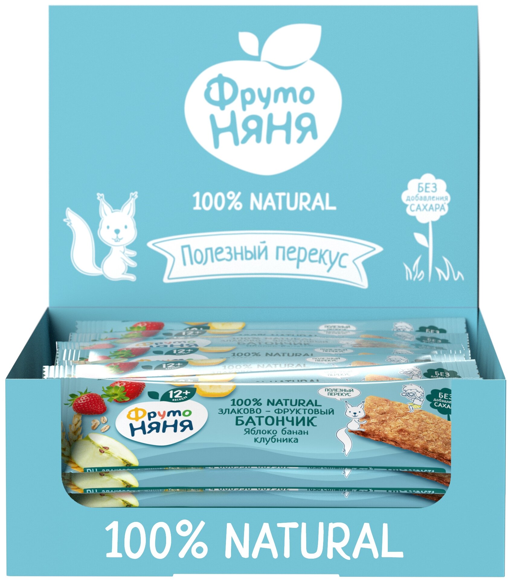 Батончик ФрутоНяня яблоко-банан-клубника-злаки с 12 месяцев 25 г 20 шт информация: