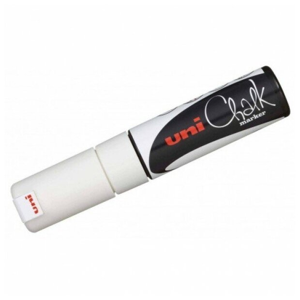 Маркер Маркер меловой UNI "Chalk", 8 мм, белый, влагостираемый, для гладких поверхностей, PWE-8K WHITE