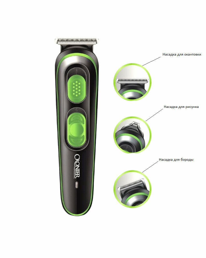 10 цен на Триммер для бороды и усов, трммер для волос CR-832 с 3 насадками, зелёный