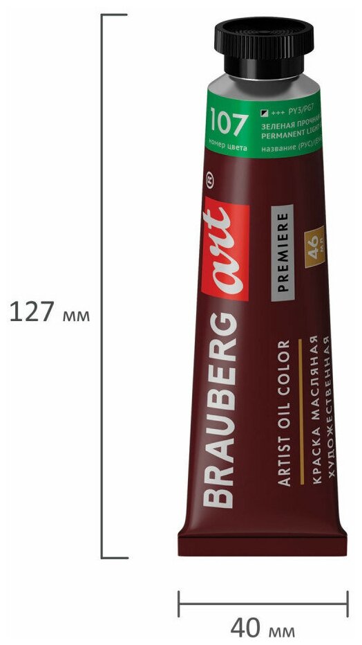 BRAUBERG Краска масляная Art premiere Профессиональная серия, 46 мл, зеленая прочная светлая информация: