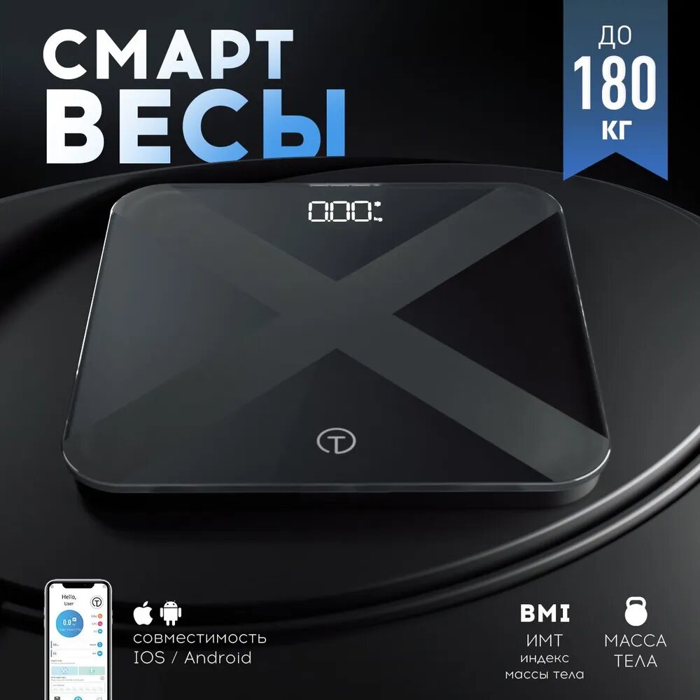 Весы напольные, электронные, диагностические, материал - пластик, стекло, точность - 50 г, вес до - 150 кг, GoodsMart, 1 шт.