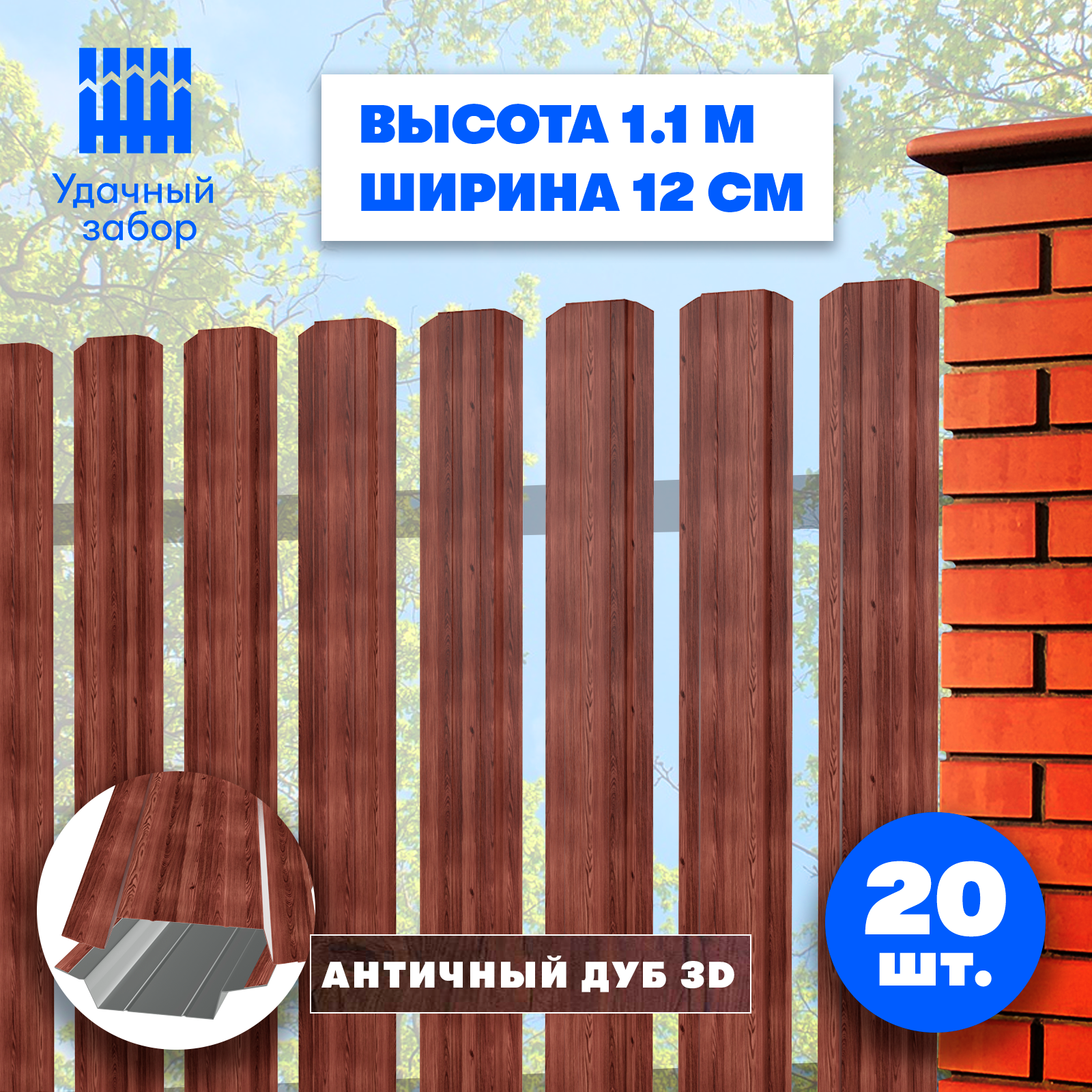 10 цен на Штакетник металлический Практик (односторонний окрас Принтек - Античный Дуб 3D, высота 1.1 м, ширина планки 9 см, 20 шт., саморезы в комплекте)