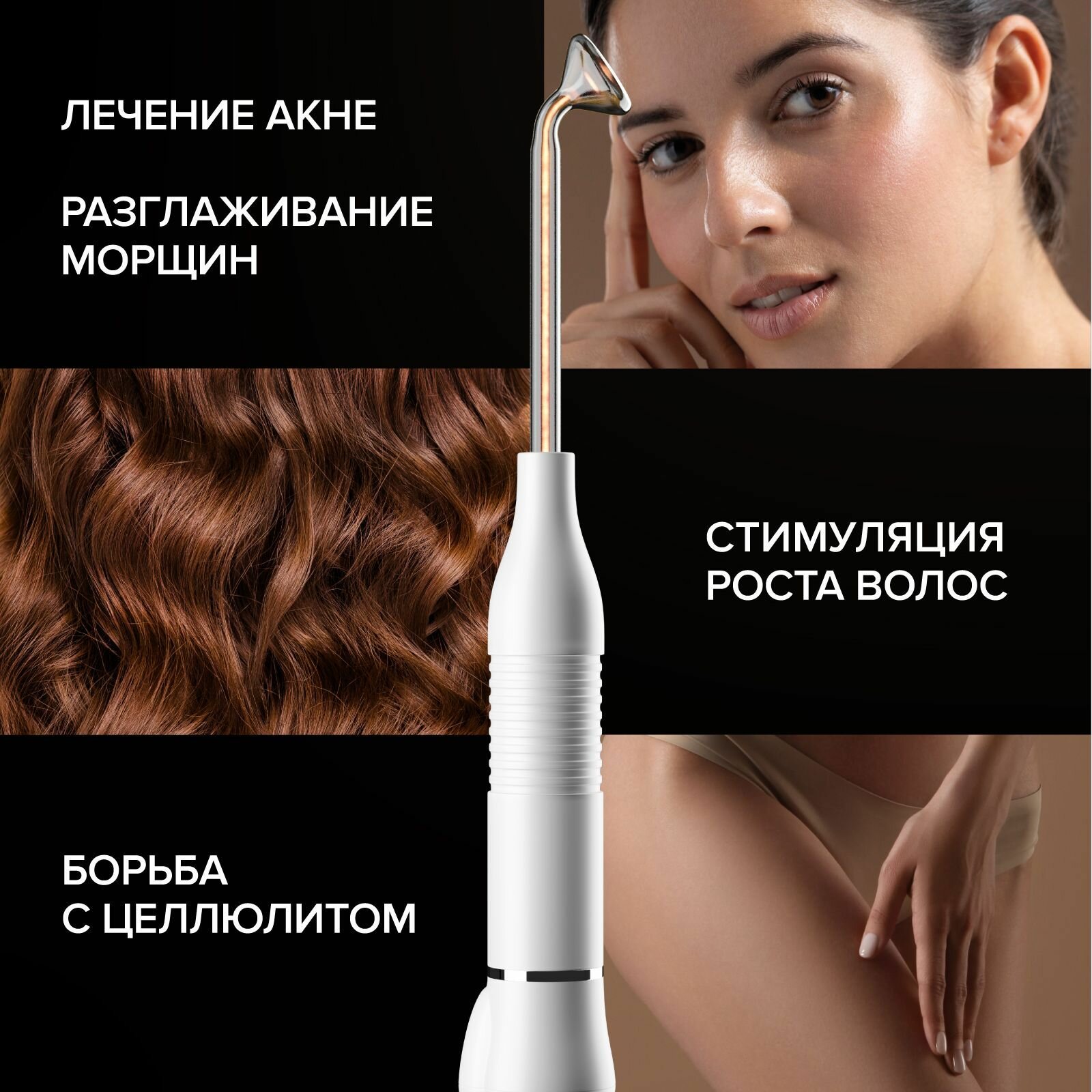 HoneyCare Косметологический аппарат Дарсонваль для волос, лица и тела. Дарсонваль аппарат с 4 насадками. информация: