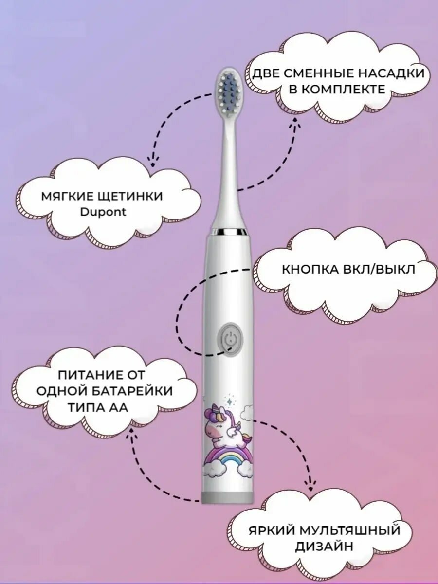 Отзывы на Детская Электрическая зубная щетка Beautiful Smile, для детей 3-7 лет, с 5 насадками, и батарейкой в комплекте - Единорог
