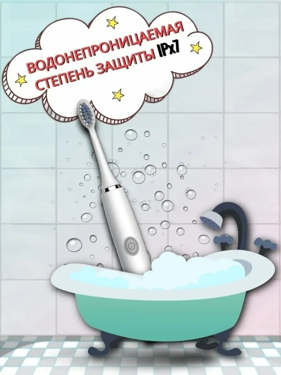 Электрическая зубная щетка Smart Sonic, длительный срок службы, 6 насадок, белый.