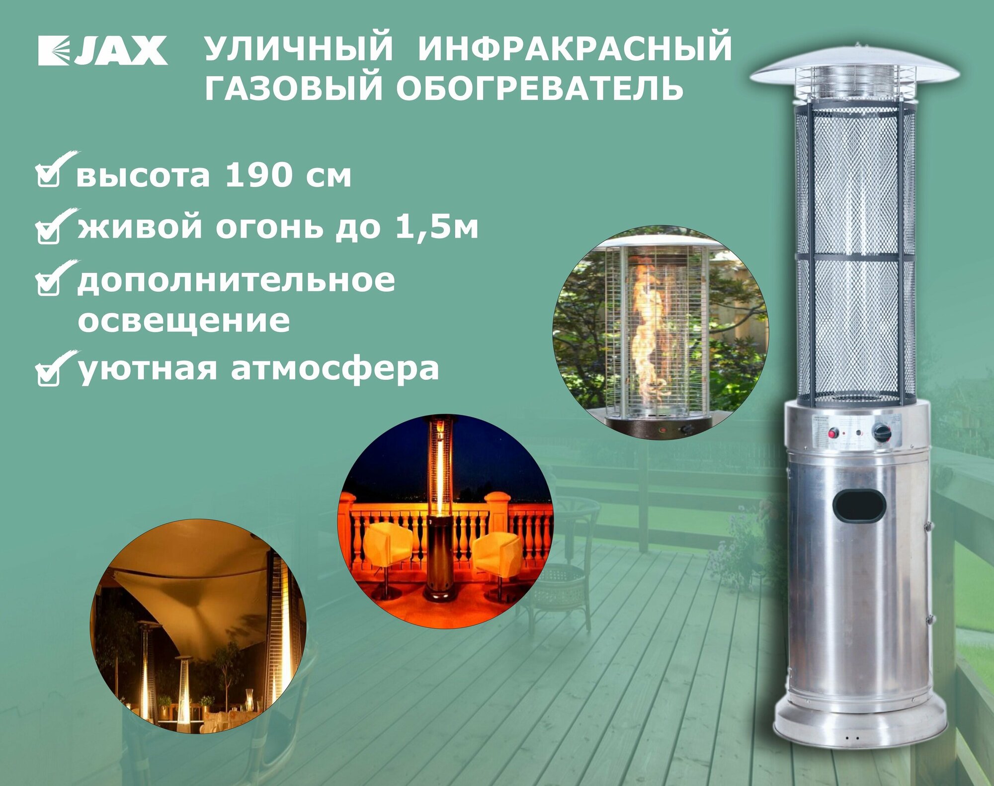 Уличный инфракрасный газовый обогреватель Jax JOGH-11000 PNS информация: