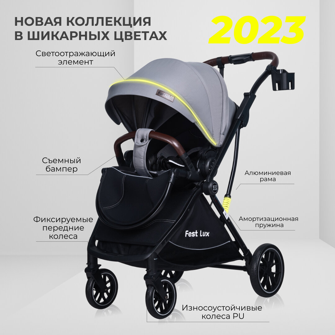 10 цен на Прогулочная коляска детская с реверсивным блоком Farfello Fest Lux, Серый