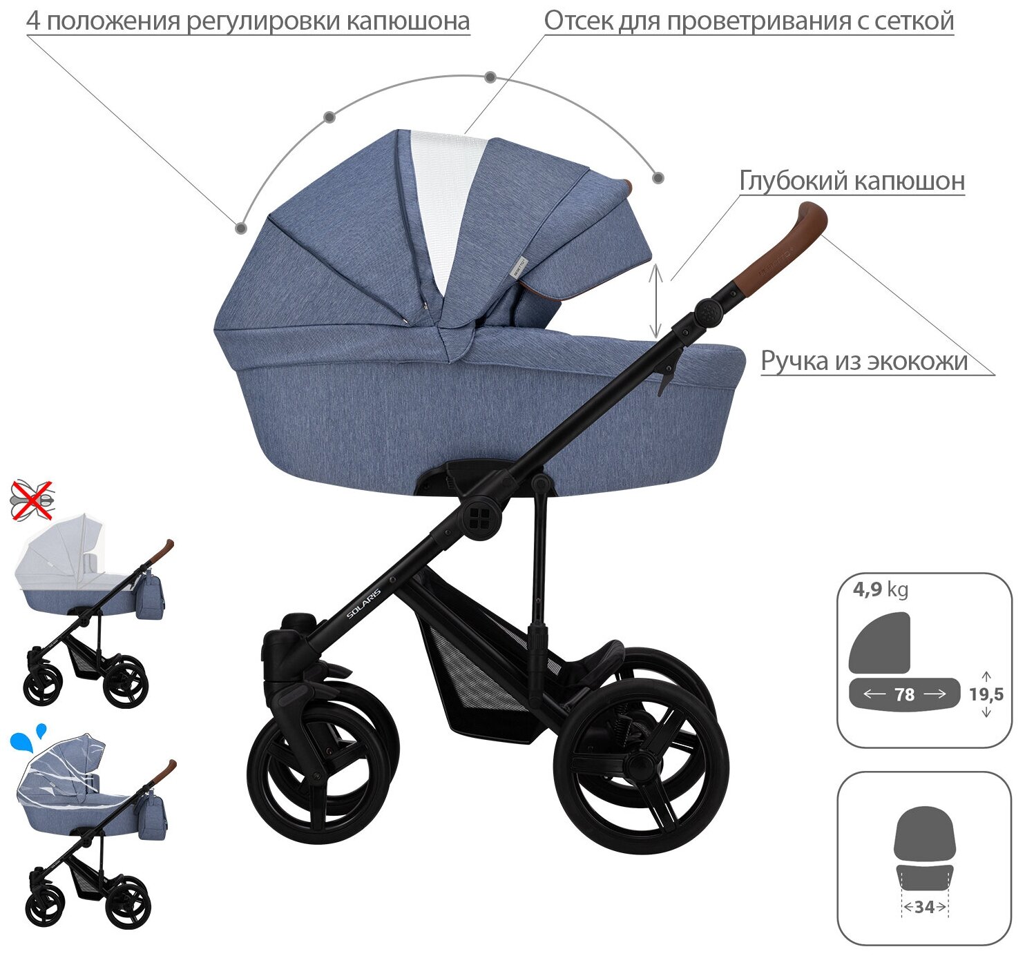 | Капюшон | капюшон опускается до бампера, материал с УФ-защитой |
