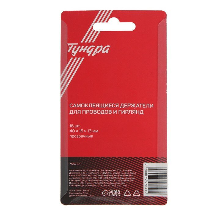 Держатель самоклеящийся для проводов и гирлянд тундра krep, прозрачный, 16 шт../В упаковке шт: 1 информация: