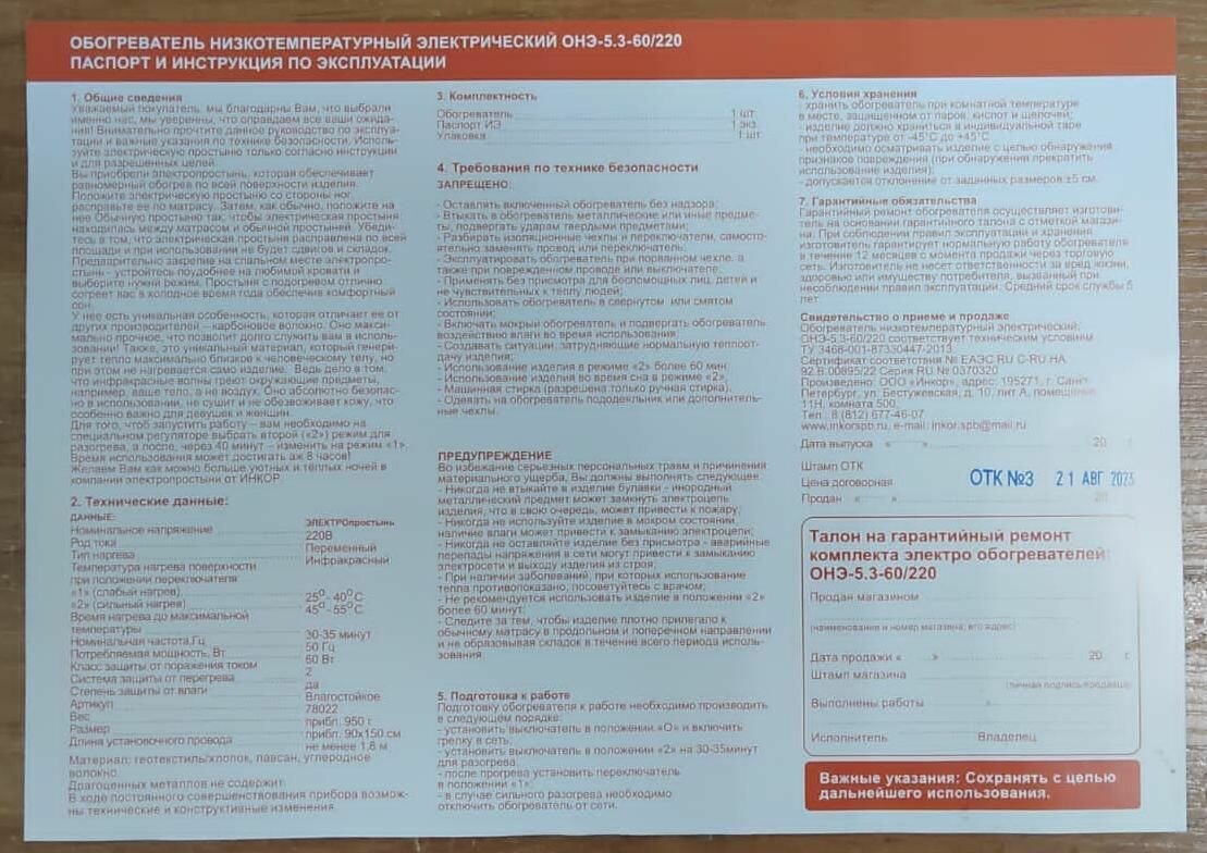 Отзывы на Простыня электрическая, "Стандарт" без чехла 90х150см, 78022 (ОНЭ-5.3-60/220)