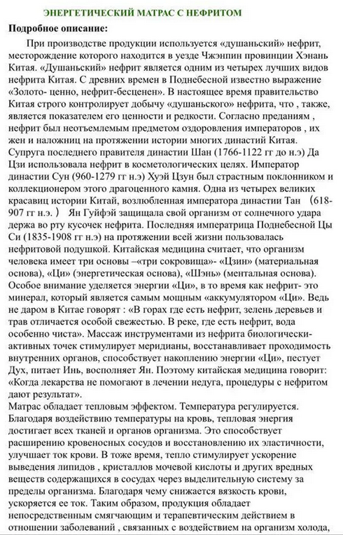 Мы выбрали 10 лучших цен на Энергетический матрас с нефритом. Перед тем как купить Энергетический матрас с нефритом посмотрите найденные предложения из Яндекс Маркета и других сайтов на основе XML фидов.