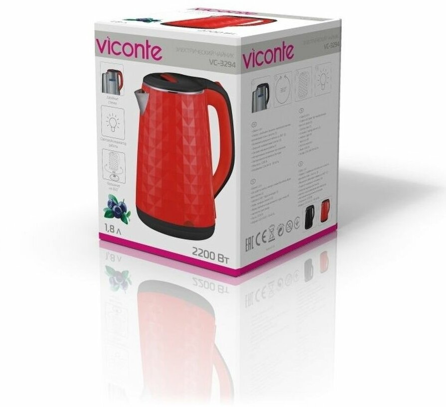 Чайник электрический VICONTE VC-3294 1,8 л, красный информация: