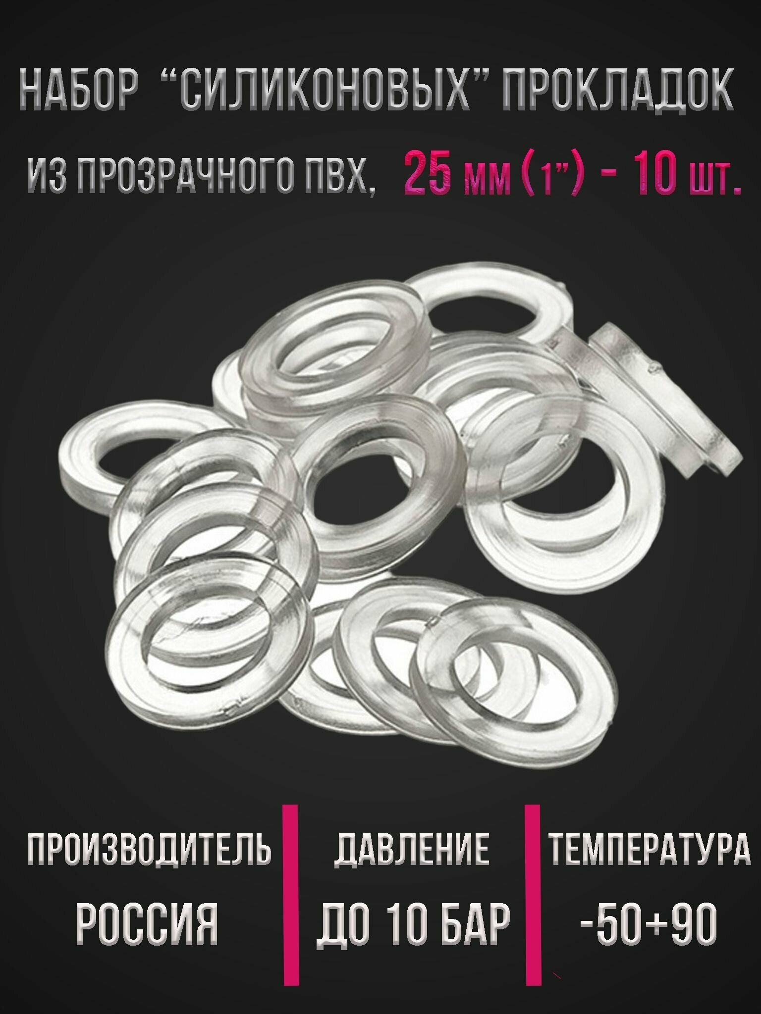 Комплект (набор) "силиконовых" прокладок из прозрачного ПВХ диаметр 1'' (25 мм.), толщина 3,5 мм. 10 штук информация: