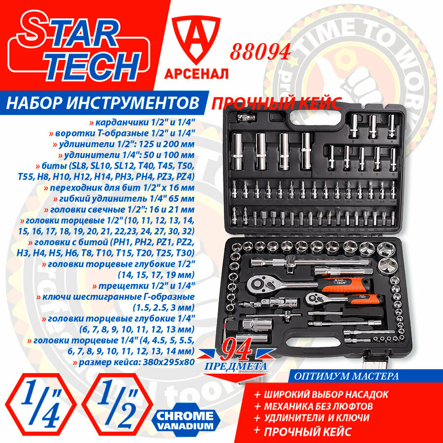 Набор инструментов 94 предмета StarTech 1/2" и 1/4" (головки торцевые, биты) информация: