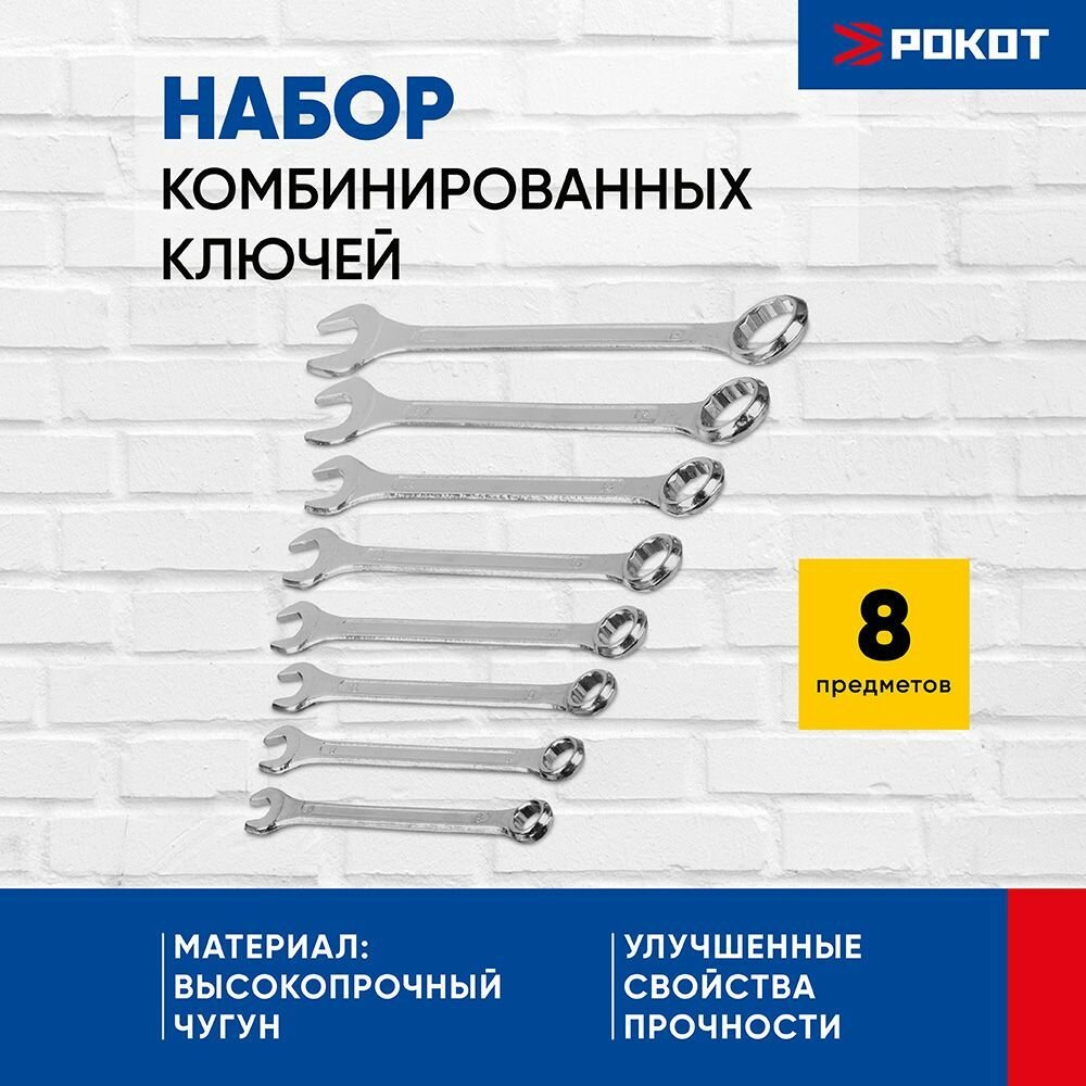 10 цен на Рокот Набор из 8 комбинированных ключей (8,9,10,11,13,14,17,19 мм)
