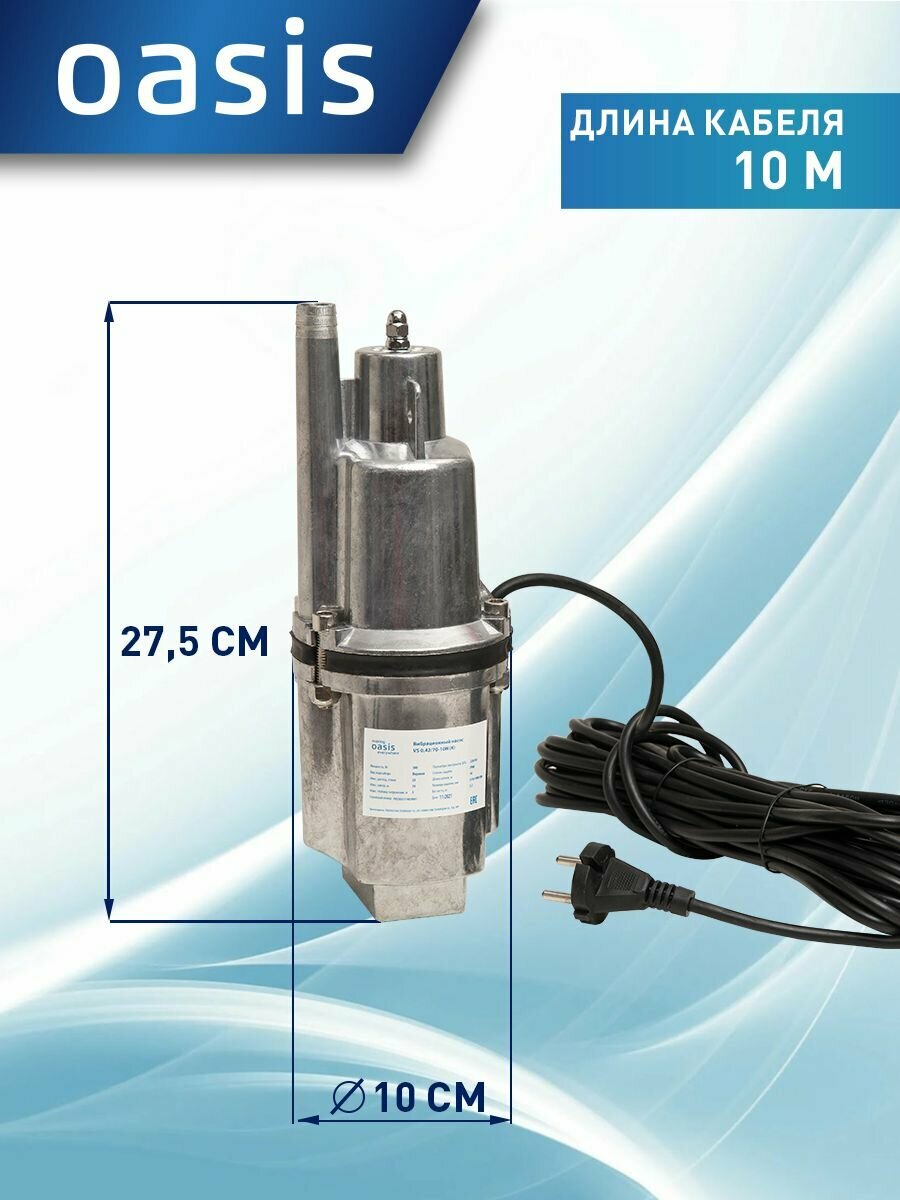 Насос вибрационный Oasis VS 0.42/70 - 10N, верхний забор, напор 70 м, 25 л/мин, 10 м информация: