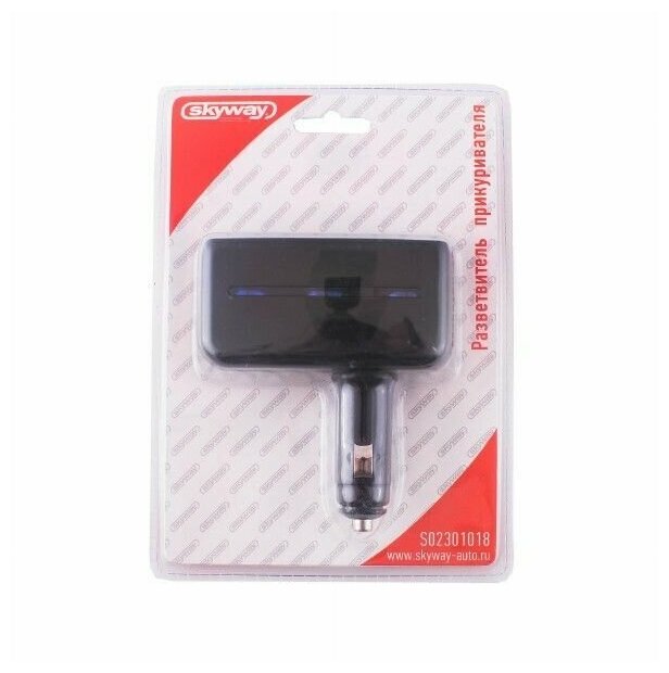 Разветвитель прикуривателя 2-х гнездовой 12V, SKYWAY S02301017 (1 шт.)