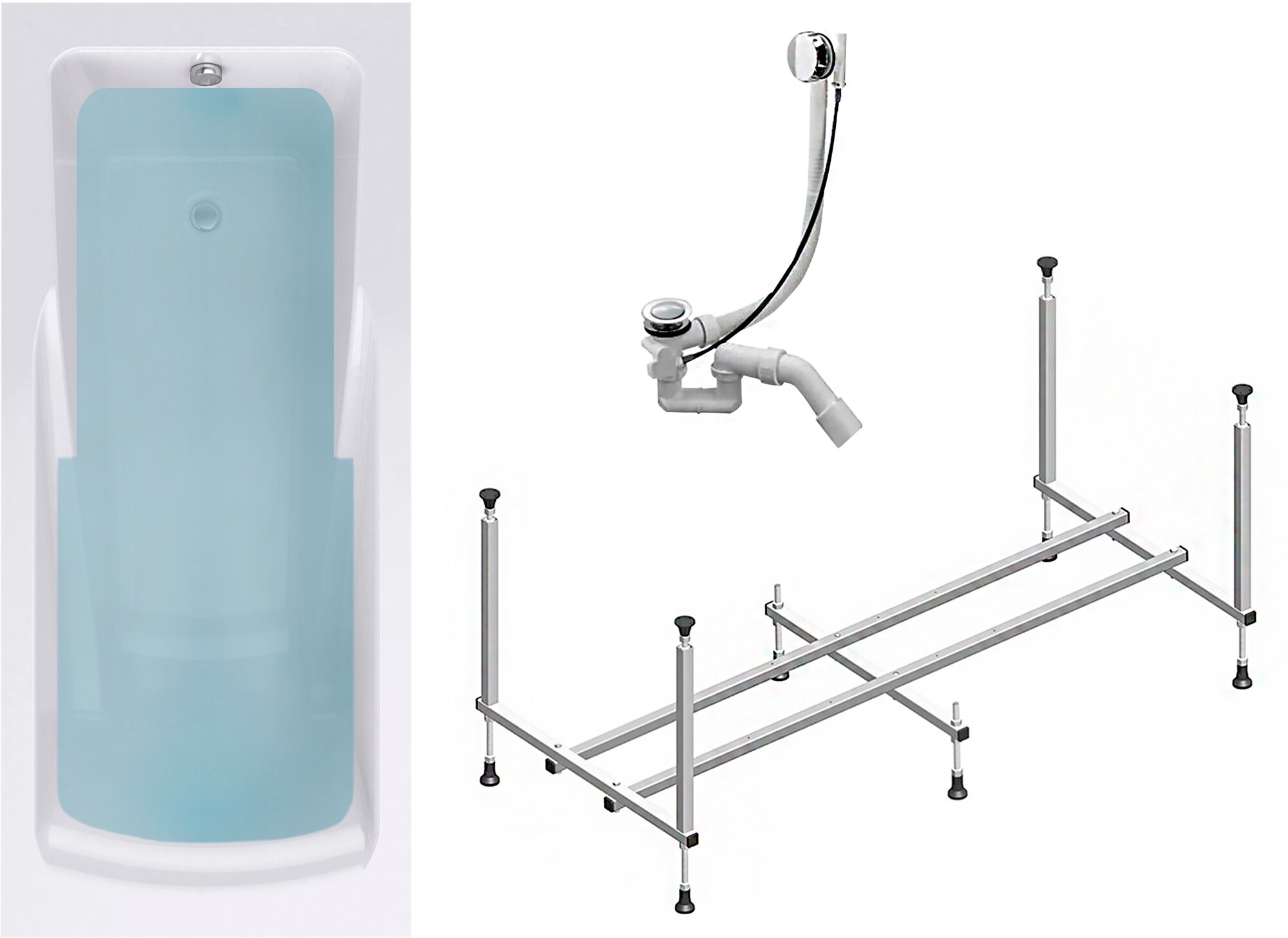 | Подробная комплектация | Акриловая ванна HELLA1575 150*75*63+Каркас + Слив-перелив |